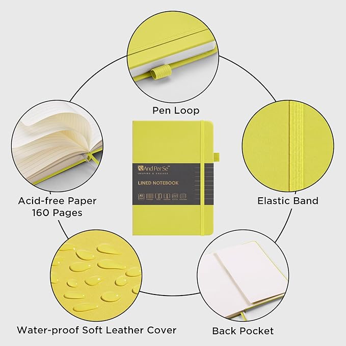 - 160 PAGES LINED NOTEBOOK: 80 sheets/160 lined pages provide ample space for writing. The A5 size (5.7'' × 8'') makes this notebook the perfect travel companion.
