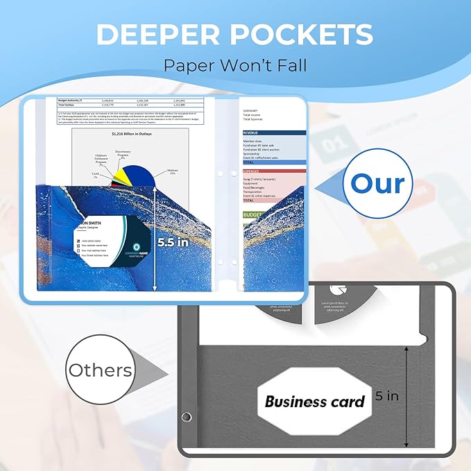 - PRODUCT SIZE & CAPACITY: These document folders measures 11.15" L x 11.15" W, perfect for holding standard A4 or letter-size papers. These 2 pocket folders can securely hold over 50 sheets, making it great for organizing your important documents.