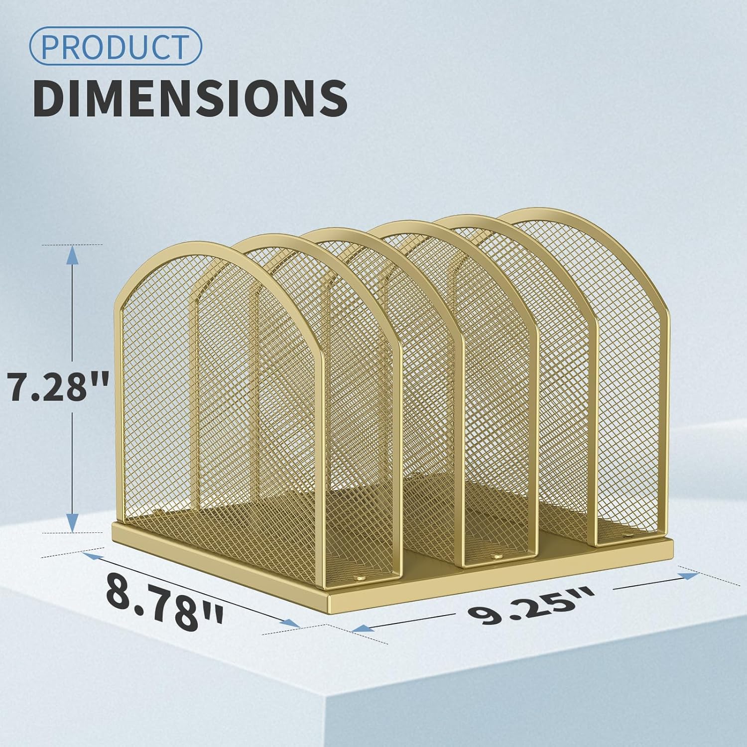 5-Section Vertical Desktop Organizer, 5-Section Mesh File Folder Stand Sorter for Office Home Classroom Organization (1, Gold)