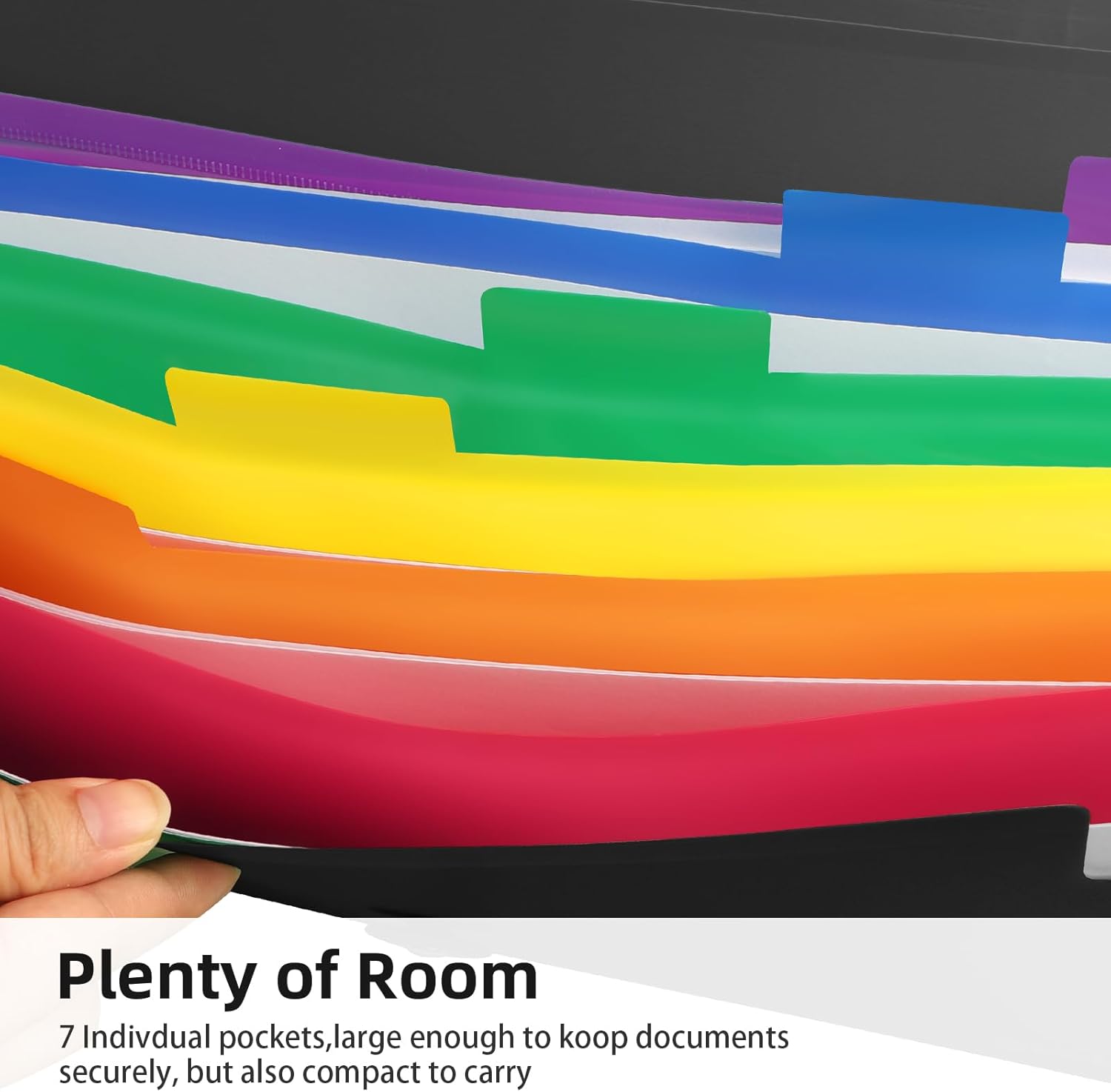 3 Pack 7 Pocket Accordian File Organizer, Expanding File Folder with Labels, Plastic Expandable File Folder for Documents Letter Size A4 Papers