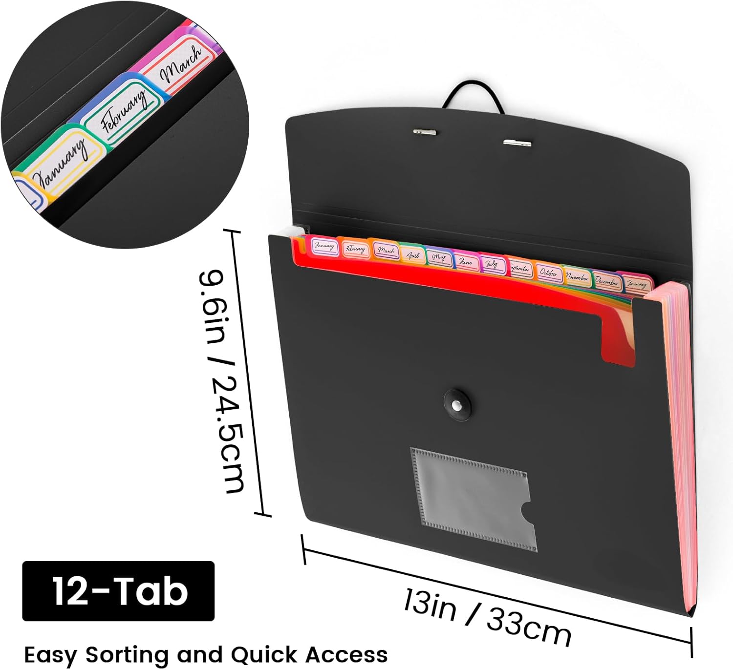 - Extra Capacity: 13 pocket accordion folder size is 13 x 9.6 inches, holds up to 300~360 sheets of paper. Comes with 12 writable labels to help find what you want easily