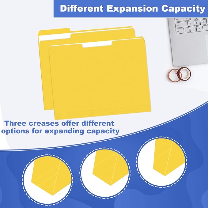 - ECONOMICAL & ECO-CONSCIOUS: Protect the environment by using tabs made with recyclable paper. Recyclable yellow filing folders (120-count) for neatly storing and organizing documents.