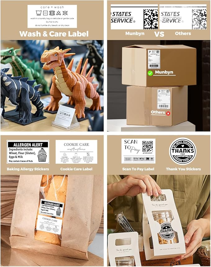 - Integrated AI for Enhanced Performance: The Munbyn RW402B wireless thermal printer integrates advanced AI to refine print head performance, ensuring both print and delivery accuracy. This versatile printer can even handle photo printing with its dedicated picture printer model. Perfectly supporting not only shipping label printing, but also home organization stickers, branding decoration stickers, and much more(It is not a color printer, only prints black.)