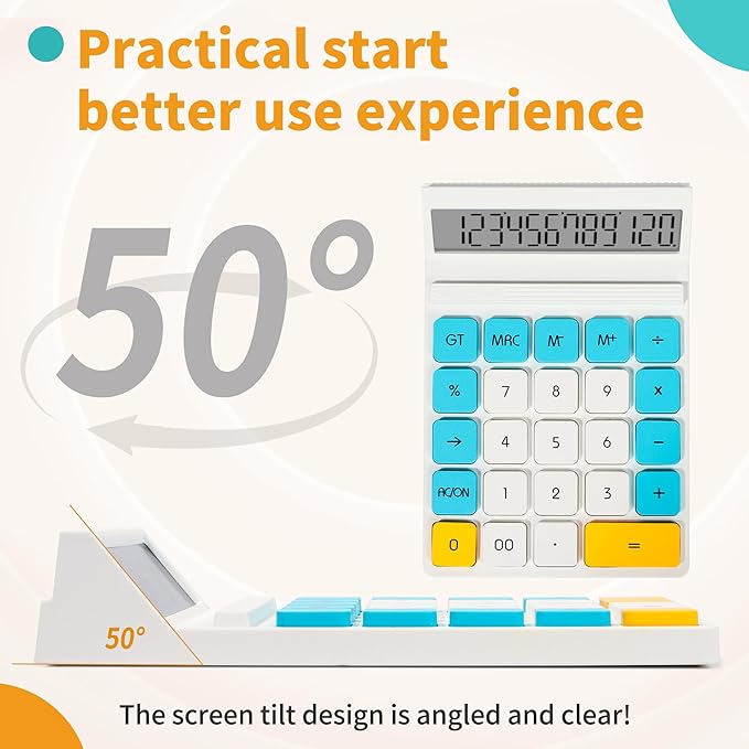 - 【Comfortable and User-Friendly】: Features durable silicone keys, a comfortable ABS plastic body, and a well-organized layout for easy operation. Includes independent memory keys, M+, M-, GT, percentage (%) key, and a delete key (▶). Equipped with non-slip pads to prevent sliding during use, keeping it firmly in place on your desk.