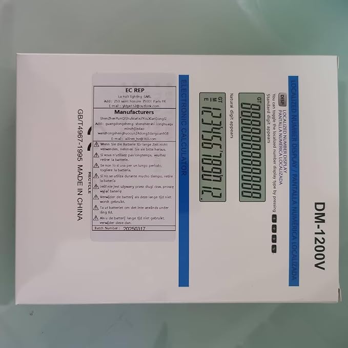 - 1.Large LCD display with 12 digits: This means it can display more accurate and long strings of numbers, facilitating the handling of complex calculations.For example, when conducting financial calculations involving large amounts or multiple decimal places, it can be displayed clearly and accurately.