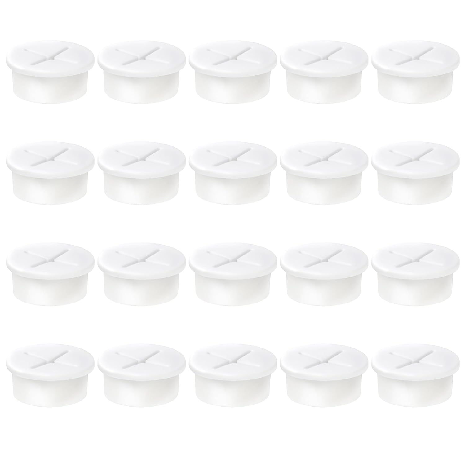 1" White Desk Grommet, JTemgle Flexible Cable Grommet Cross Rubber Cable Hole Cover Wire Organizer Caps Desktop Cord Management for Home Office TV Stands Tabletops, 20 Pieces