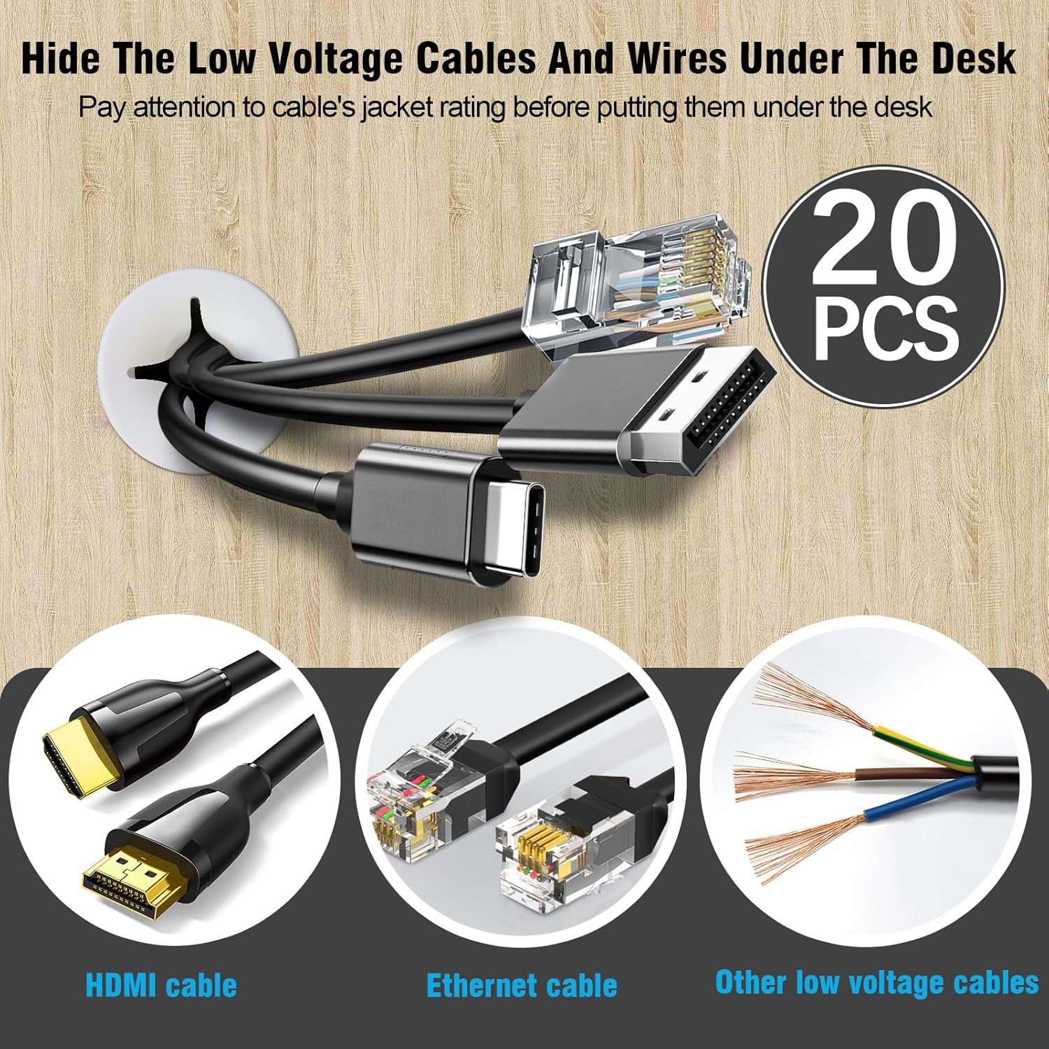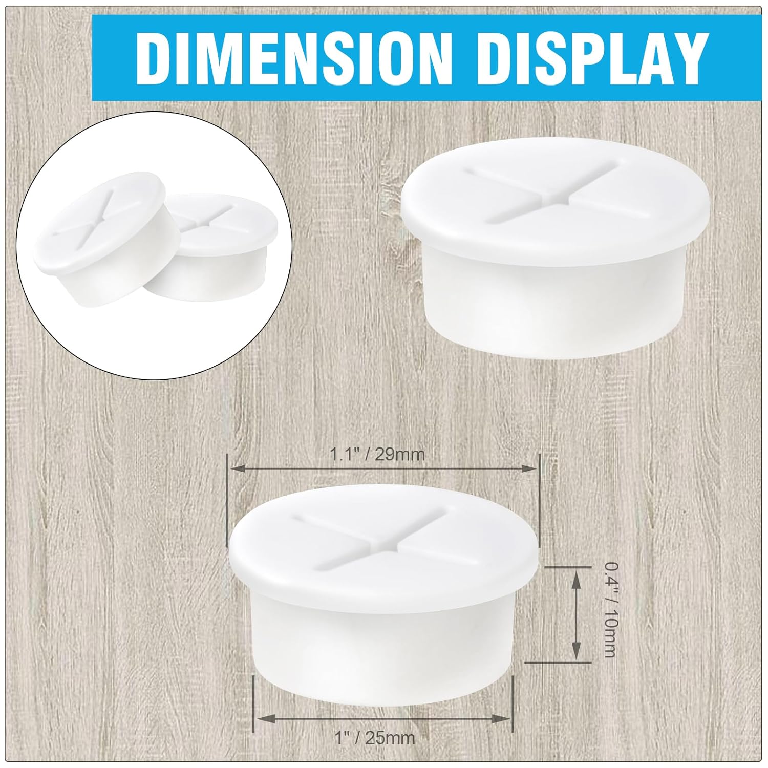 - DELIGHTS PACKAGE -- Your package includes 20 x 25mm desk grommets. Useful Tips: ① Make sure the hole's edges are smooth and free of splinters that could damage your cables or the grommet, ② Place the grommet into the hole. It should fit snugly, ③ Finally, route your cables through the desk grommet.
