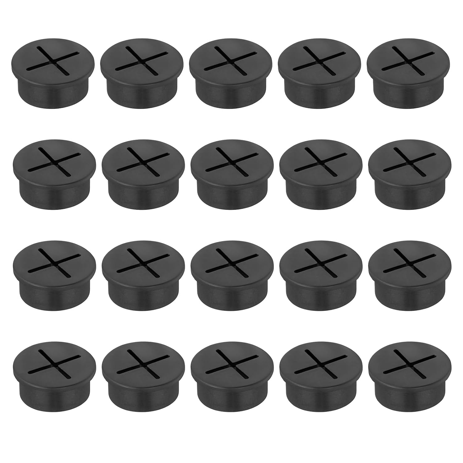 1" Black Desk Grommet, JTemgle Flexible Cable Grommet Cross Rubber Cable Hole Cover Wire Organizer Caps Desktop Cord Management for Home Office TV Stands Tabletops, 20 Pieces