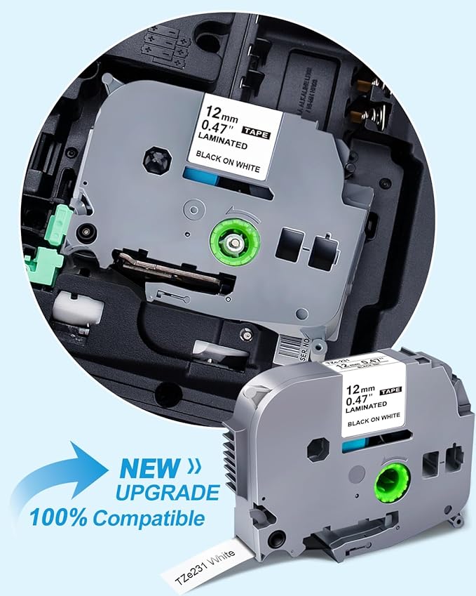 - 【Built to Last】12mm TZe-231 replacement for Brother P-Touch label makers tape. Its strong adhesive label tape pv-resustant, water resistant, abrasion resistant, corrosion-resistant, temperature resistance, Fade resistant, chemical resistant. high-performance labeling solution designed for long-lasting use in demanding environments
