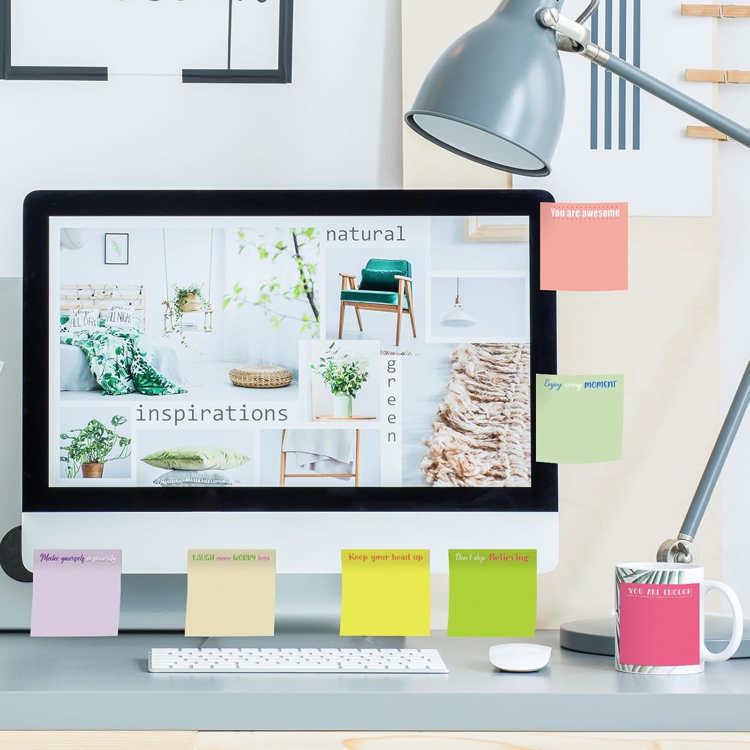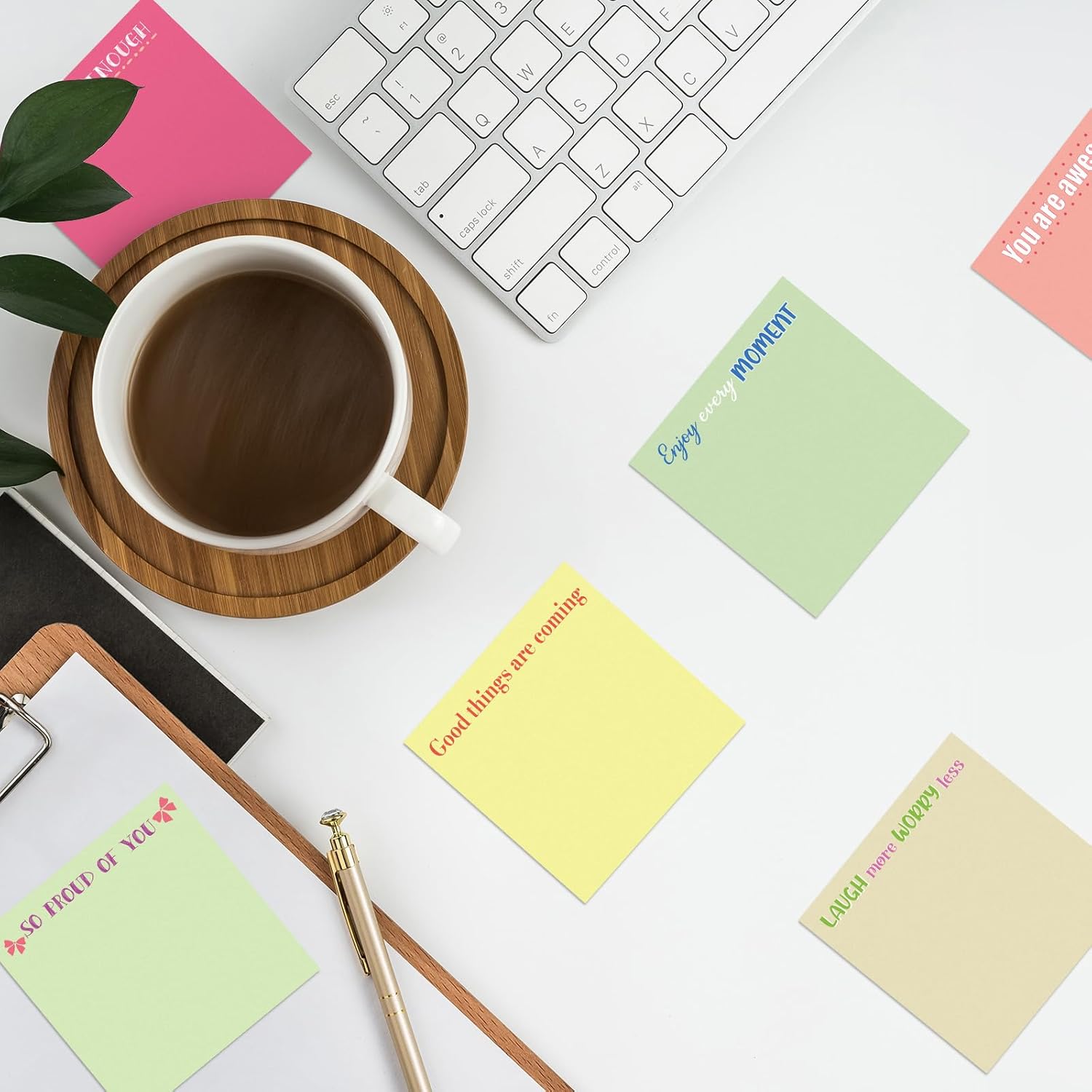 - Inspirational design: the motivational sticky notes are designed with inspiring quotes on the colorful memo notepads, including the sentences of [hey warrior keep going], [do your thing], [wake up with a purpose], [good things are coming], [you are enough], [enjoy every moment], [make yourself a priority], [laugh more worry less], [keep your head up], [don't stop believing] and so on, which can encourage you to keep active attitudes to your life