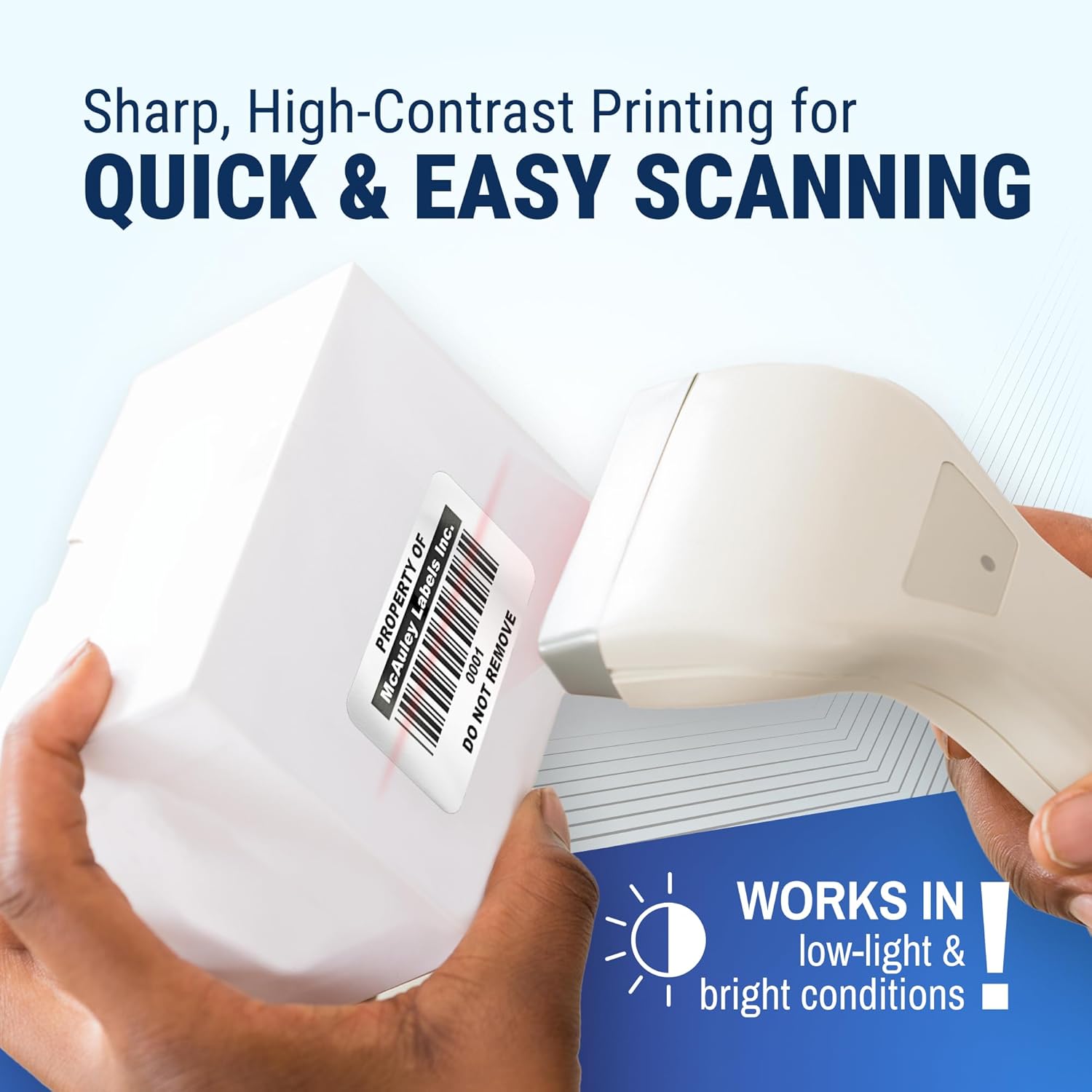 - Precision Printing & High-Contrast Visibility: Your barcode labels and serial number stickers feature sharp, high-contrast printing, making them easy to scan in any lighting condition. Perfect for fast inventory management, security tracking, and equipment identification