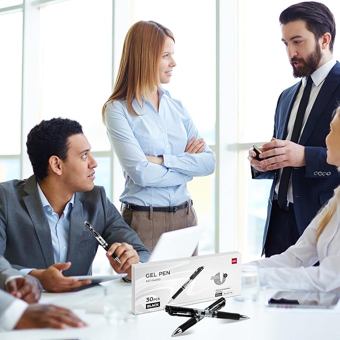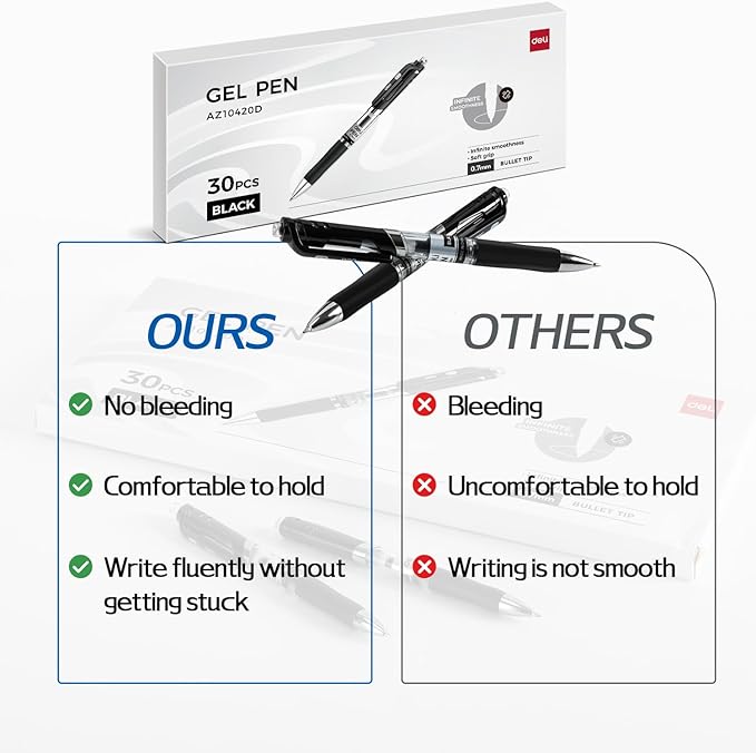 deli Gel Pens, 30 Pcs Retractable Pens Black Ink, Medium Point Pen Bulk 0.7mm, Smooth Writing, Fast Dry, No Bleed for Journaling Note Taking, Home School Office Supplies