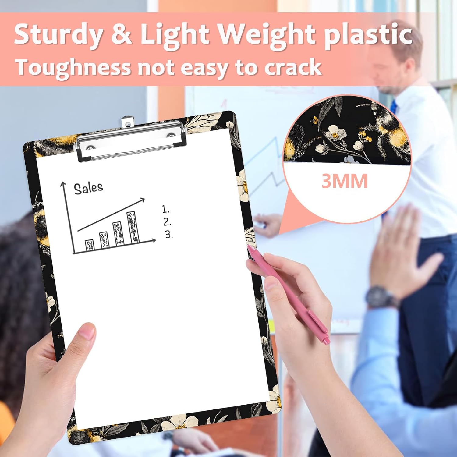 Honeybee White Daisy Plastic Clipboards,Cute Fashion Clipboard Decorative 8.5" x 12.5"Standard A4 Size Clipboards,Acrylic Clipboard for Teacher,Social Worker,Students,Nurse,Office Supplies