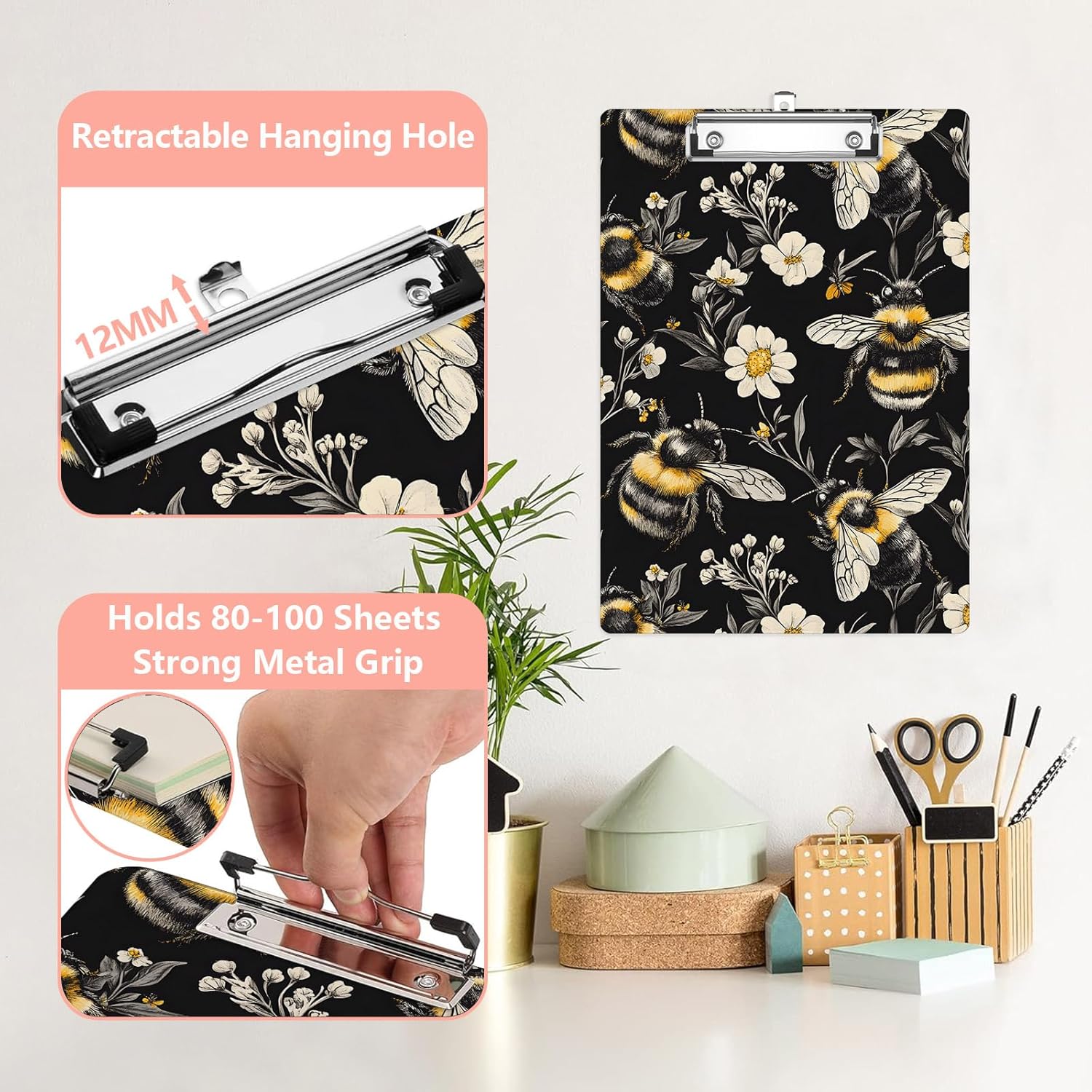 - 【Standard clipboard Dimension】Measures 12.5*8.5 inches,the clipboard can hold standard A4 size papers with ease,and easy to clip on and take off.Suit for storing your draft papers artworks,invoices,work orders and more.Designed with Low-Profile Metal Clip,easy to stow away when not needed and fits in most briefcases.