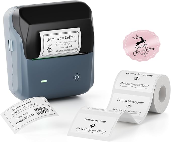 - 【Widely Used】With compact design, you can bring this portable label maker machine to anywhere! Widely used in bakery, crafts, retail,clothing, jewellery, small business owners, online-shop,school,office, home business & home organization. Like address, barcode, price, date, ingredients and product labeling. Ideal for a variety of daily/commercial labeling needs.Save a lot of time and improve efficiency, allowing you to focus more on your small business.