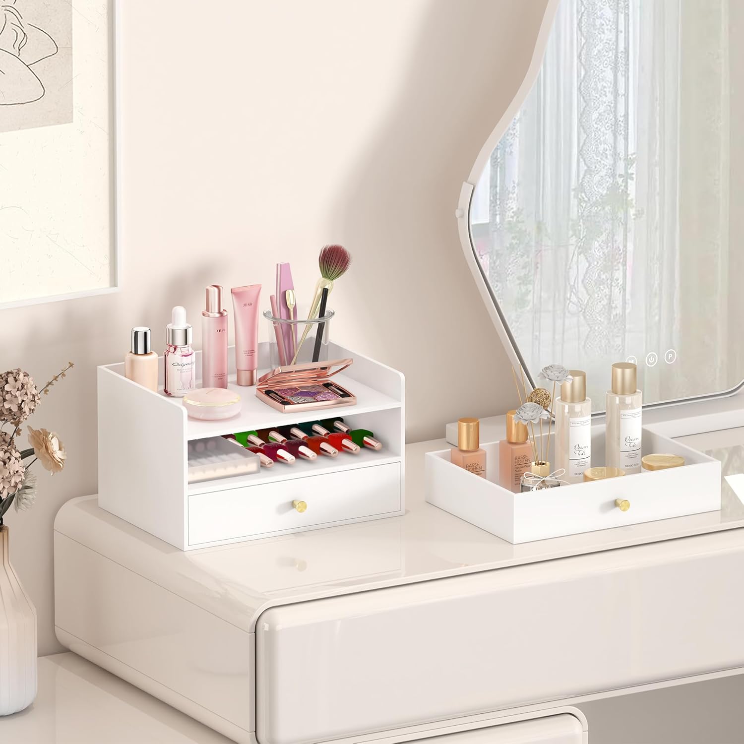 - Versatile Desk Organizer with Multiple Compartments: Designed with various compartments and drawers, this desk organizer helps you efficiently organize stationery, cosmetics, or small items, keeping your desk clutter-free.