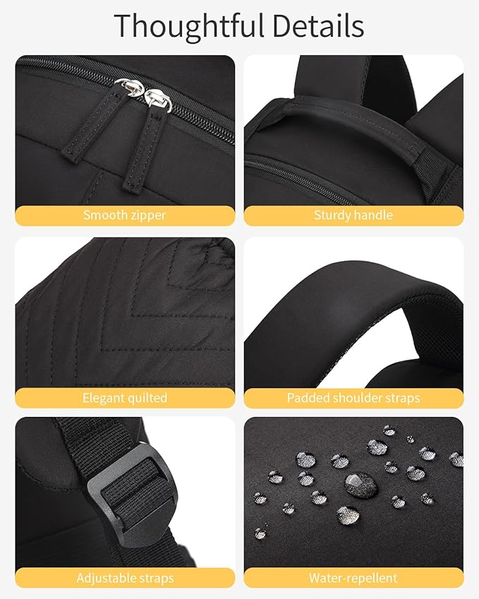 - Convenient Water Bottle Pocket: Both side pockets have elastic closures for large water bottles. The side pockets on both sides have V-shaped quilted, which adds to the style of the book bag