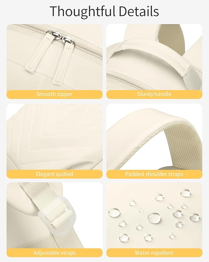 College Bookbag for Women Student, 15.6in Laptop Backpack Middle High School Bag for Teen Girls Teacher Work Commuter Travel, Beige