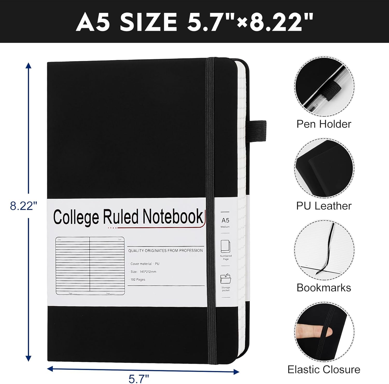 - 【Ample Writing Space-192 Pages】This A5 notebook measures 5.7 x 8.3 inches (145 x 212 mm) and features 192 pages (96 sheets) of college-ruled paper with 7mm spacing. Perfect for extensive note-taking, journaling, or planning, making it an ideal notebooks for work or journal for women.