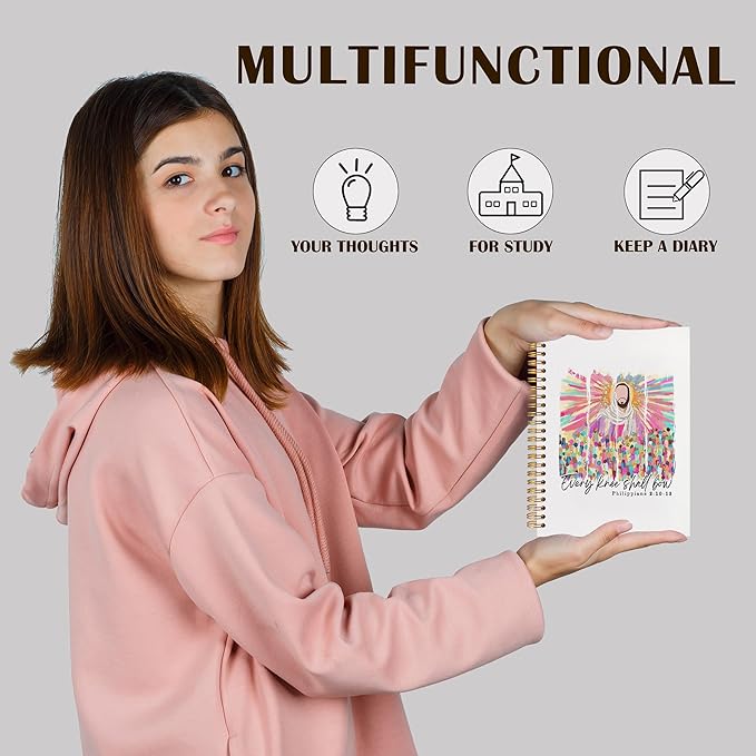 Qabliqo Colorful Christian Jesus Spiral Notebooks, Philippians 2:10-13 Bible Journals for Writing, Christian Religious Journal for Women, Scripture Notebook for Note Taking, 5.5x8.3 Inch