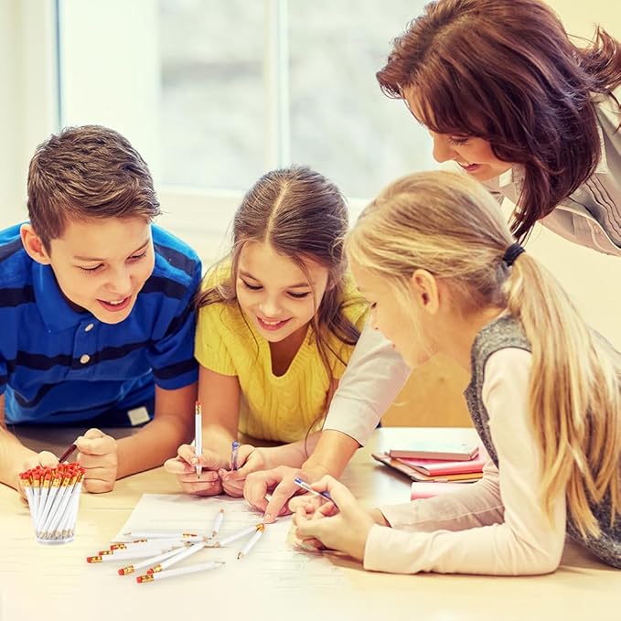 - 【Convenient Design】: the short pencil saves space, the red and white color combination is eye catching, it comes with an eraser and a square pencil sharpener, so you can sharpen the pencil at any time