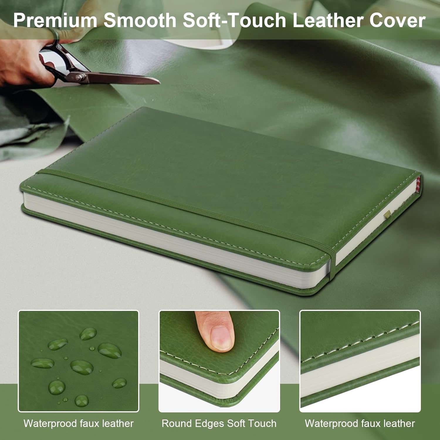 - 192 Pages Lined Journal Notebooks: 6 light green hardcover notebook, 192 pages/96 sheets per notebook (1152 pages/ 576 sheets in total), adequate for work, meeting, studying. The paper of the leather notebook is thick enough that ink won't bleed through. The light yellow paper is more eyes comforting, release eyes burden when writing. It is the ideal notebook for work, school, meeting, travel and dairy