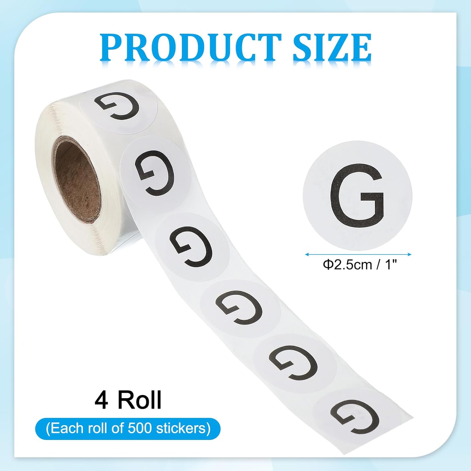 PATIKIL 1" Letter G Stickers, 4 Rolls Self-Adhesive Alphabet Round Circle Dots Labels for Organization Storage Inventory Boxes Scrapbook Craft 2000 Pcs Total