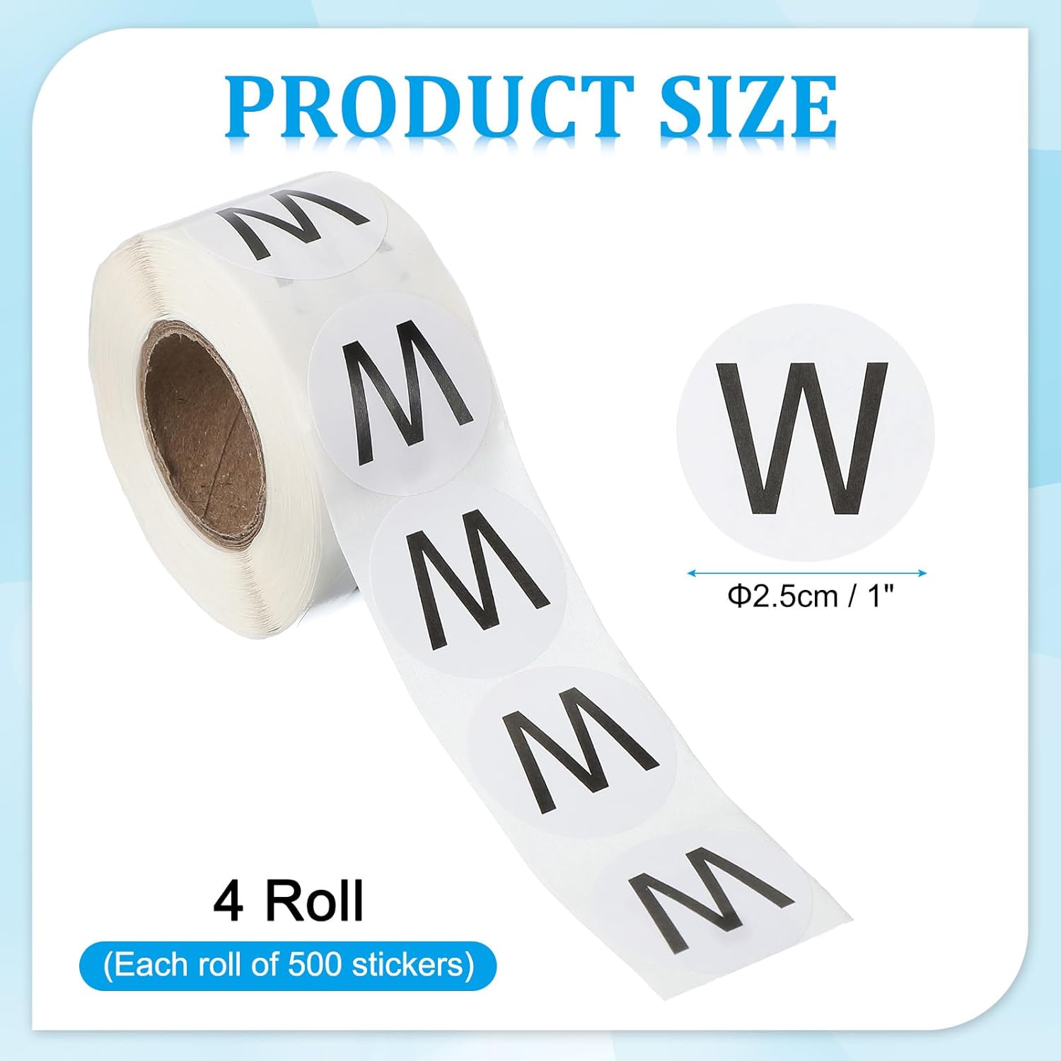 - Sticker Diameter: 2.5 cm / 1 Inch; Packing List: 4Roll x Alphabet Stickers(Each roll of 500 stickers, Total 2000 stickers)