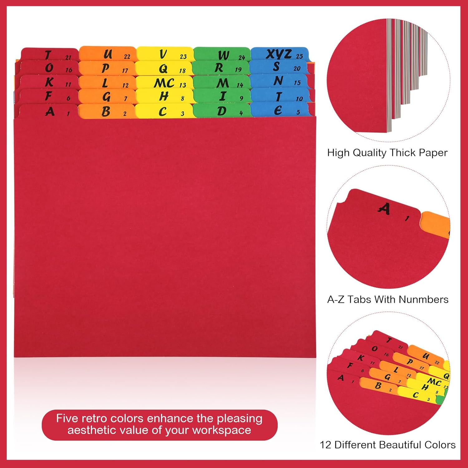 - Durable Alphabetical Dividers: manufactured from 500g heavyweight cardboard, the A-Z alphabet file dividers are robust, sturdy, and not easily susceptible to deform, breaking or deformation; They can endure long term usage, making them a nice choice for organizing your important documents through time