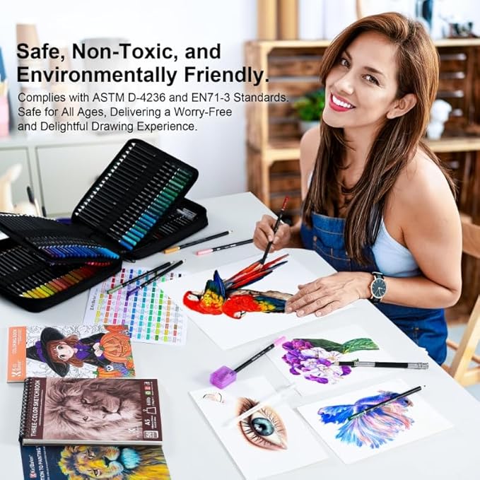 - 【Eco-Friendly & Non-Toxic Materials】: Made from sustainably sourced wood and acid-free, non-toxic materials that meet ASTM D-4236 certification. Safe for children and adults, ensuring a clean, healthy, and worry-free drawing experience.