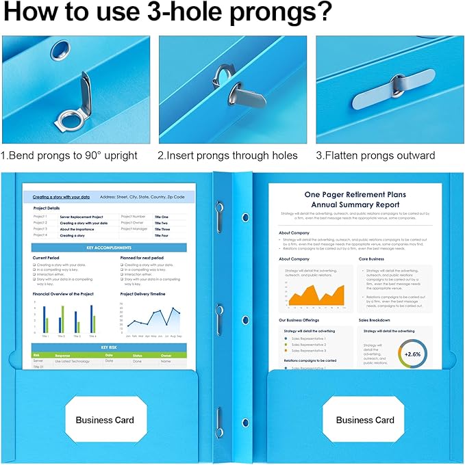 - Keep Files Organized: Each paper folders with prongs feature two pockets and three prongs, allowing you to easily store and manage your documents. Three prongs help keep the document in paper file folders, ensuring your files stay in place.