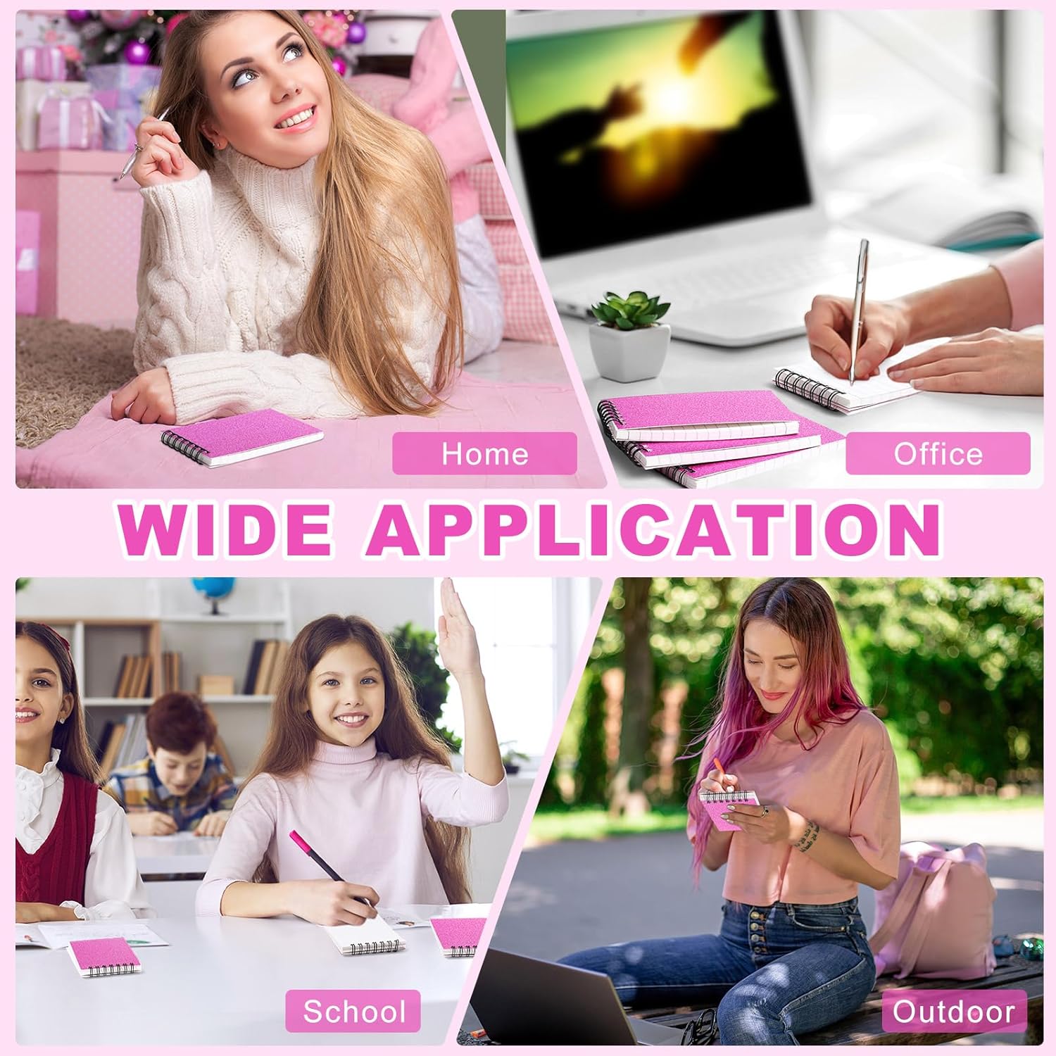 Tenceur 6 Pcs Pocket Notebook Bulk Small 3x5 Inch Spiral Notepads Mini Top Bound Notebook with Lined 120 Pages Ruled Memo Pads for Office College Nurse Essentials Back to School Gift (Glitter Pink)