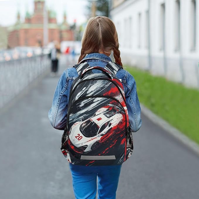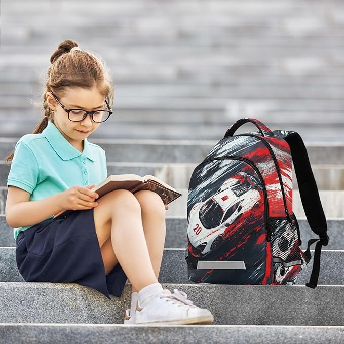 Racing Car Backpack for Boys Girls Truck Elementary School Bag Kids Bookbag Travel Rucksack