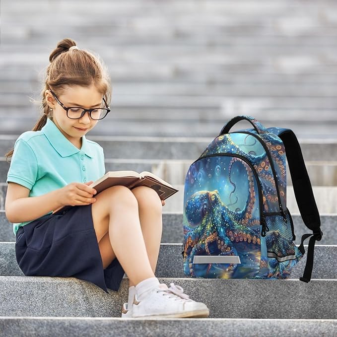 Octopus Galaxy Backpack for Boys Girls Elementary School Bag Kids Bookbag Travel Rucksack