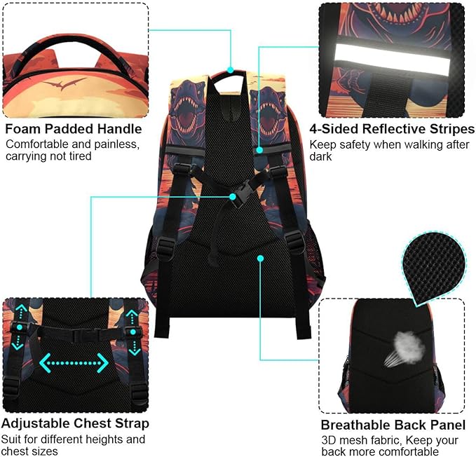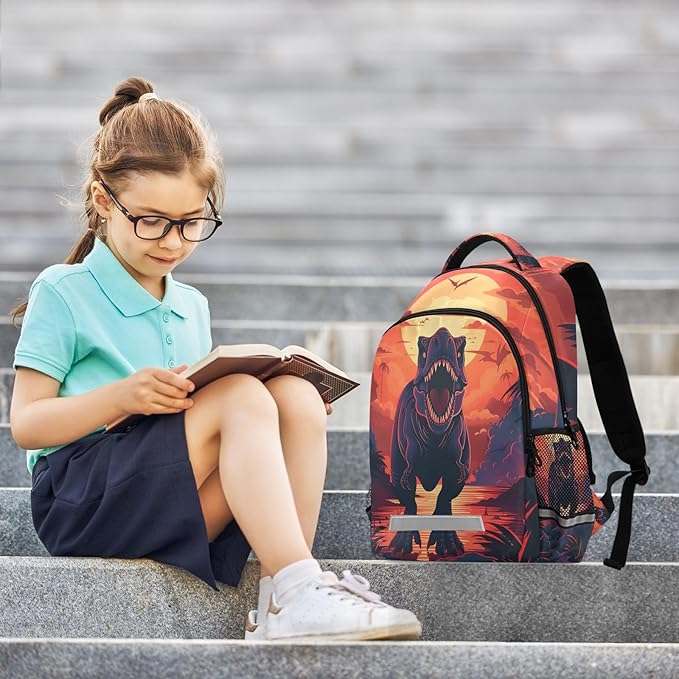 Dinosaur Sunset Backpack for Boys Girls Elementary School Bag Kids Bookbag Travel Rucksack