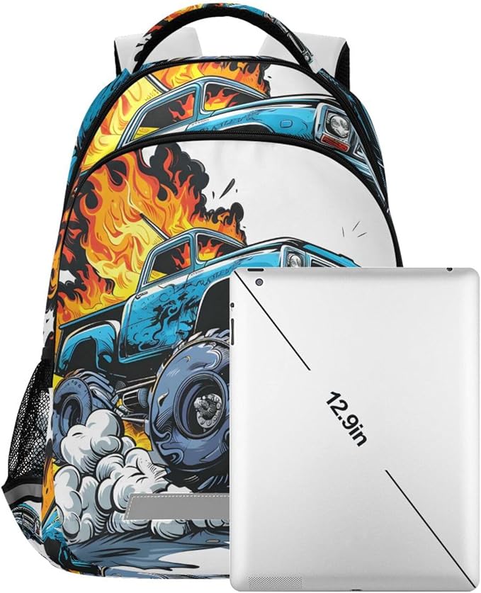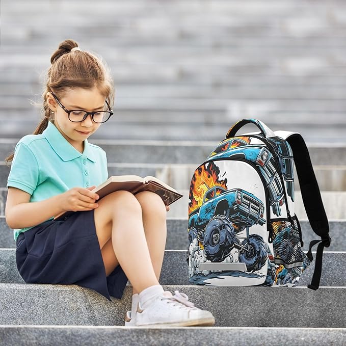 Monster Truck Blue Backpack for Boys Girls Elementary School Bag Kids Bookbag Travel Rucksack
