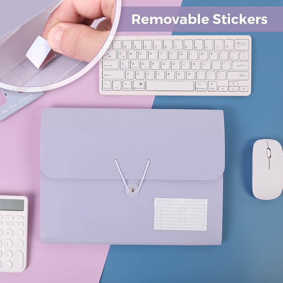 SKYDUE Expanding File Folder, Accordion File Organizer with 13 Pockets for A4/Letter Sized Paper, Accordion Folder with Labels - Document Receipt Organizer for Office, School, Home Purple