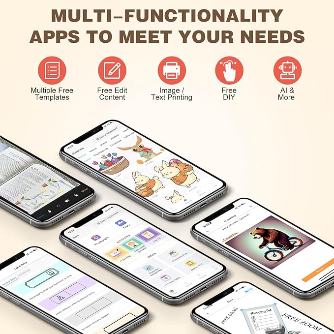 - Multifunctional Mini Printer: Using the mini sticker printer, you can print black and white photos, pictures, study notes, to-do lists, shopping lists, etc. as well as customize bookmarks, labels, magazines and greeting cards, the APP contains a variety of templates and is compatible with Android 4.0 and IOS9.0 or higher