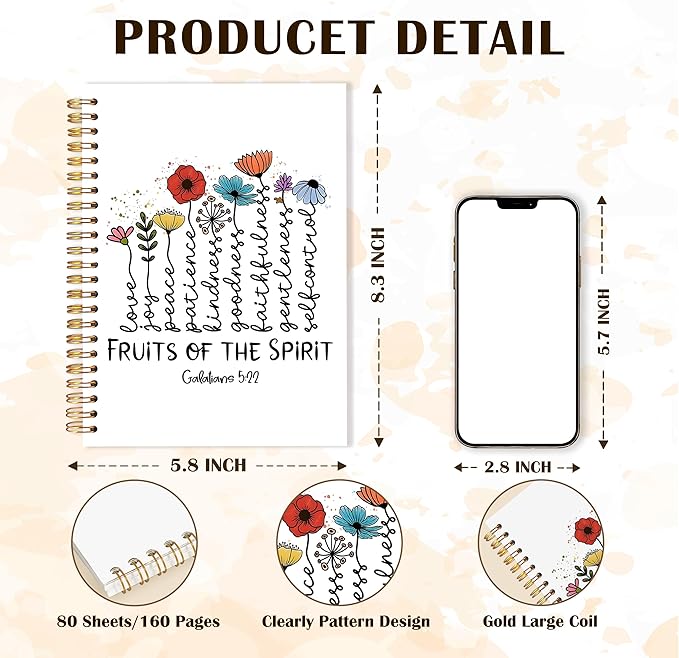 Qabliqo Fruit of the Spirit Christian Spiral Notebooks, Galatians 5:22 Bible Journals for Writing, Religious Scripture Journal for Women, Floral Bible Notebook for Note Taking, 5.5x8.3 Inch