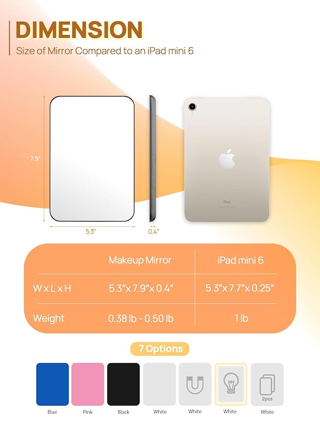 - Portable Design: With an 8-inch size, this travel makeup mirror is compact and portable, perfect for home, office, or travel, ensuring you look great anywhere