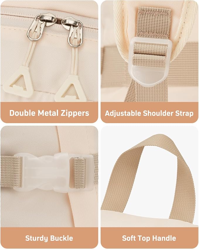School Backpack for Teen Girls, 15.6 Inch Laptop Backpack Women Kids Bookbag for Middle High School Cute College Bag for Students, Khaki Beige