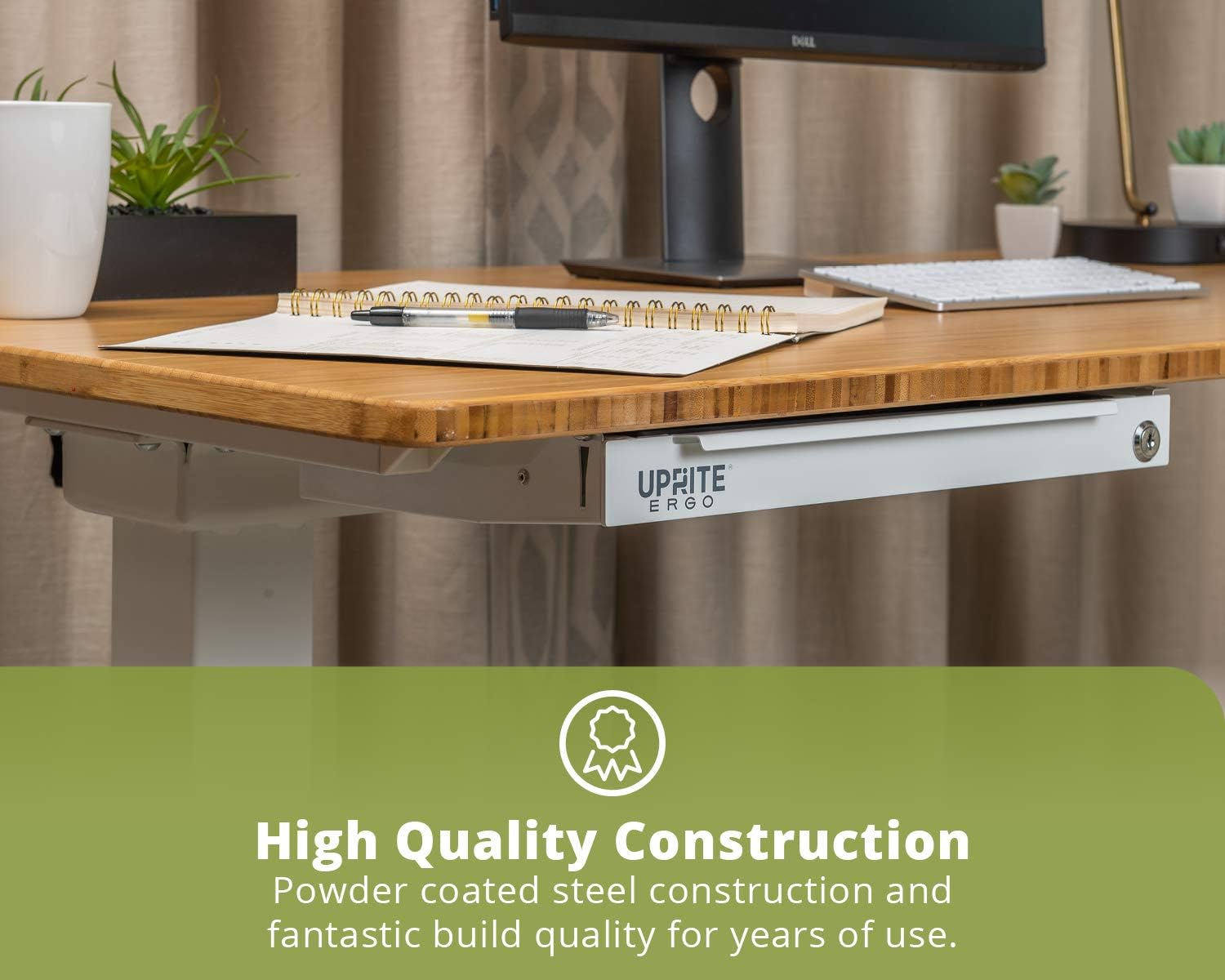 - ENGINEERED FOR SIT-STAND DESKS – The large steel drawer with organizer (19" x 9.5") has a built-in locking system and fits within the crossbar clearance of most height-adjustable desks.