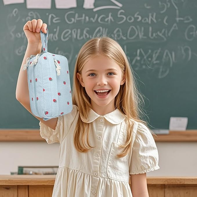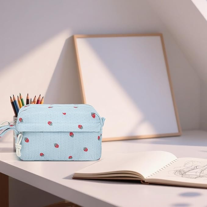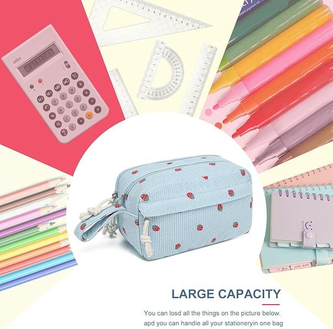 Bluboon Big Capacity Pencil Case Pencil Pouch Pen Case School Supplies Cute Pencil Box Pencil Bag for Teen Girls Boys Women Man (Strawberry Blue)