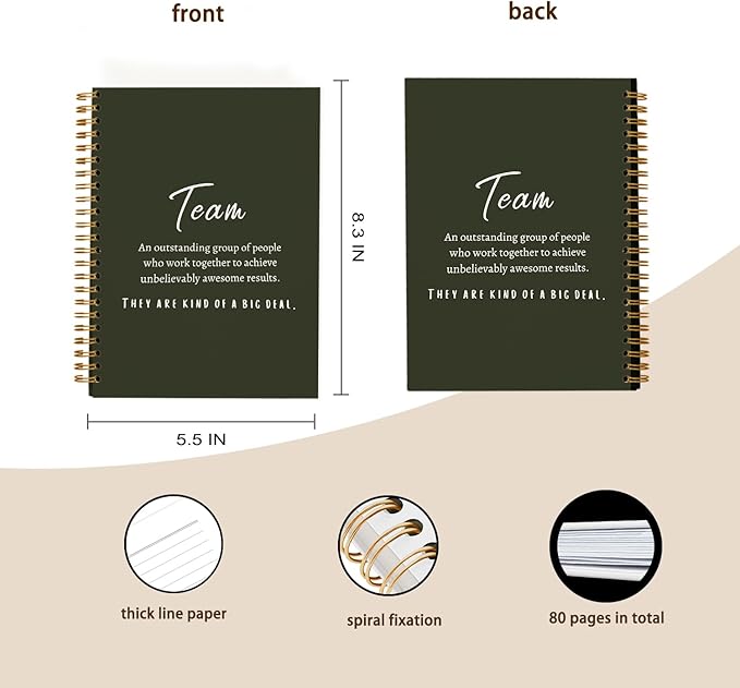 - Product Size: The team notebook measure about 5.5 x 8.3 inches, small and lightweight, easy to put into your backpack, compact to carry around. Providing you with a comfortable and smooth writing experience. Inspired designs that making them more than just a writing instrument, but a medium for positivity; these team notebooks are ideal gift ideas whether you want to recognize your team's dedication or thank a colleague for his or her contribution.