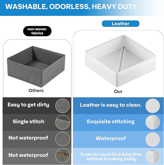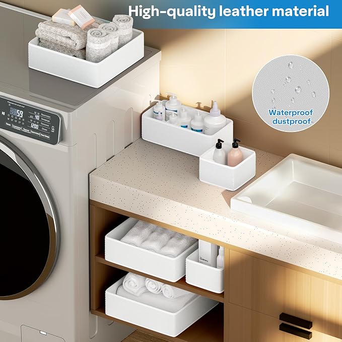 Vegan Leather Drawer Organizers,16 Pack Makeup Storage boxes,Vanity Drawer Luxury upgrade,Bedroom fabric Drawers replacement,bathroom organization and storage Optimal solution