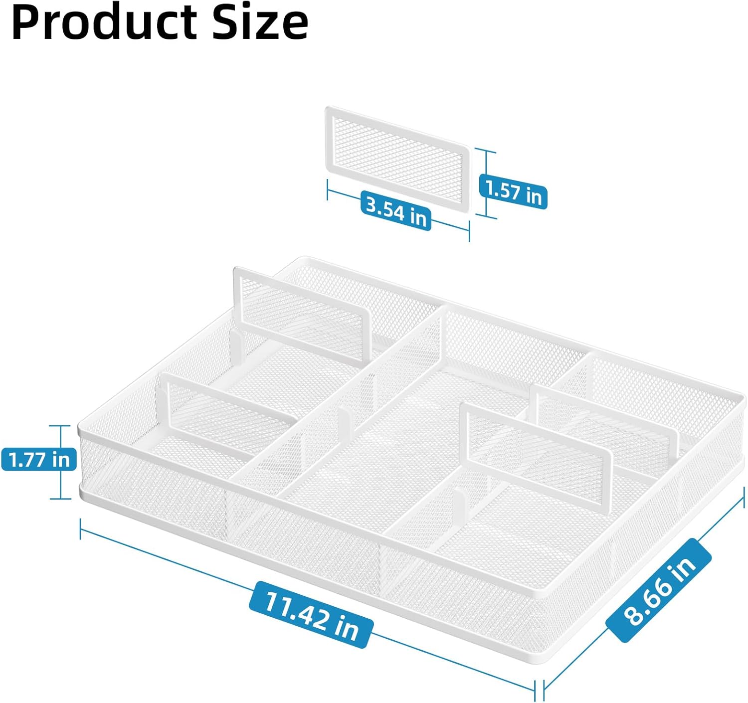 - Sturdy and Durable: Made of strong wire mesh with a powder-coated finish that is smooth, corrosion-resistant, and built to last. Non-slip feet keep the organizer stable and in place.This practical desk drawer organizer also makes a perfect gift for your family and friends.
