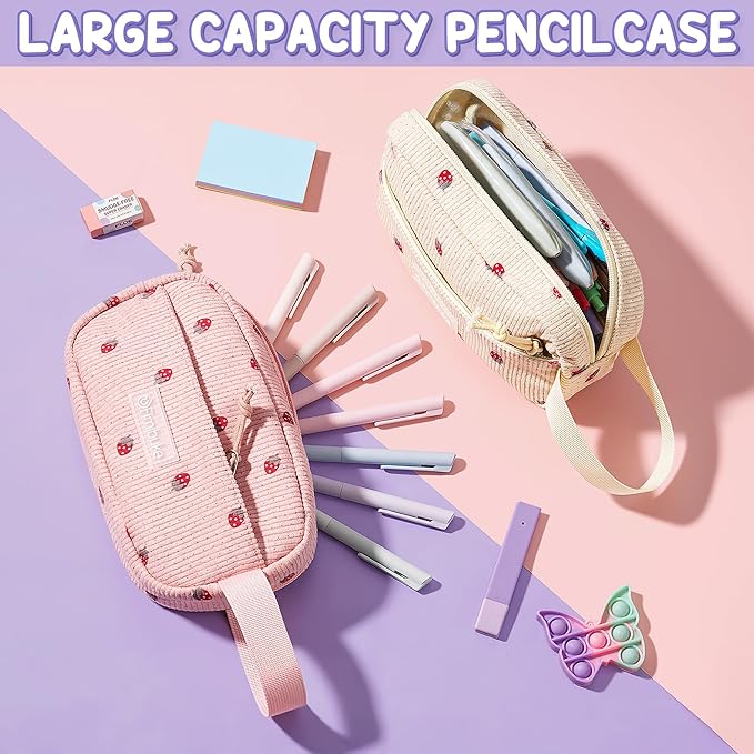 - INSULATED LUNCH BAG & PENCIL POUCH: Features a double-walled vacuum insulation, the corduroy lunch bag for girls keeps food and drinks fresh/warm/cool for hours. Its spacious interior easily holds bento boxes, snacks, and fruit that kids need whole day to school. Additionally, the large capacity pencil case with convenient wrist strap helps organize a variety of stationery & tools like: pencils, pens, highlighters, rulers, sticky note, small staplers etc