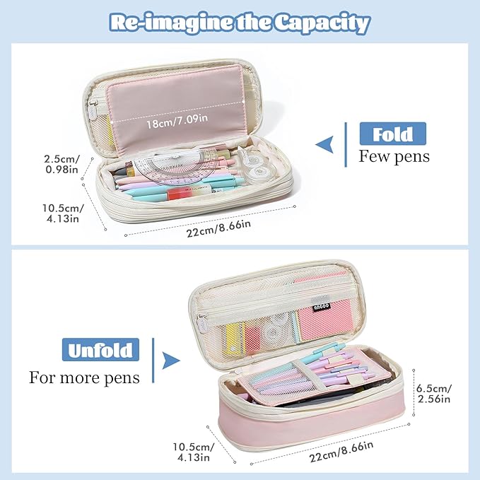 - 【Upgraded Large Capacity】Measuring 8.66 x 4.13 x 2.56in, the aesthetic pencil case comes with a large capacity design, which can hold up to 50 pens or 90 pencils. Enough capacity to store all your study stationery, such as pens, pencils, erasers, rulers, sticky notes, USB flash drives, or small calculator, etc.