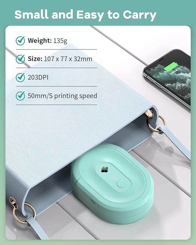 - 2025 New Model: Compared with traditional label makers, the N12 label maker is only half the weight and size of conventional models. It is more compact, smarter, and easier to carry around. You can easily slip it into your pocket and print anytime, anywhere. With its 203 DPI high-resolution printing, it delivers clear and sharp print quality. The printer is simple to use and offers fast, smooth printing