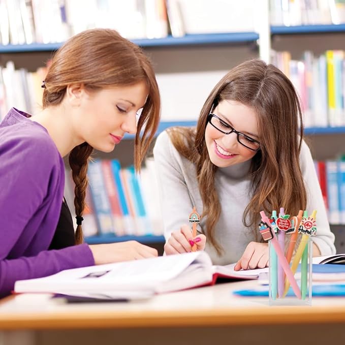 - Creative Back to School Supplies:The gel pens set includes 6 different colored pens, each containing a different pen clip, which is very special.The pen clip comes in several cute shapes of back to school related items,such as: school bus, books, apples, bags, pencils, etc.Funny pens for kids are suitable for back to school gifts for students,back to school gifts for kids,teacher back to school gift,back to school stuff for teen girls.
